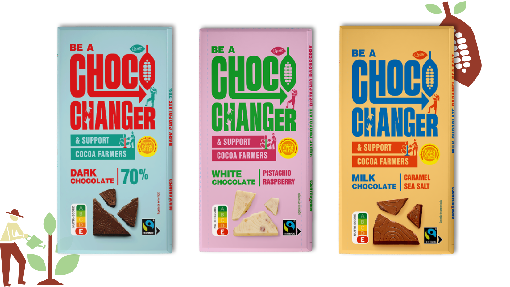 Sweet, delicious, and 100% sustainably sourced! Your choice has a positive impact on cocoa farmers in West Africa and their communities. All cocoa beans for our Choceur CHOCO CHANGER are Fairtrade certified and responsibly sourced via Tony’s Open Chain. By adopting their principles for sustainable sourcing, we take full responsibility for our cocoa supply chain.